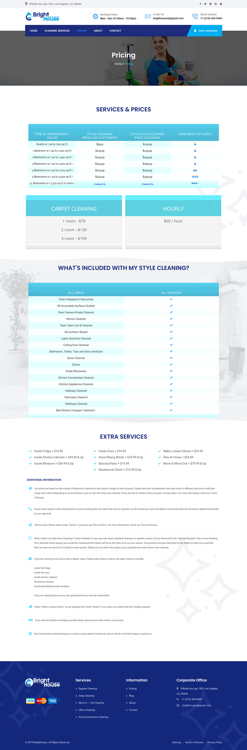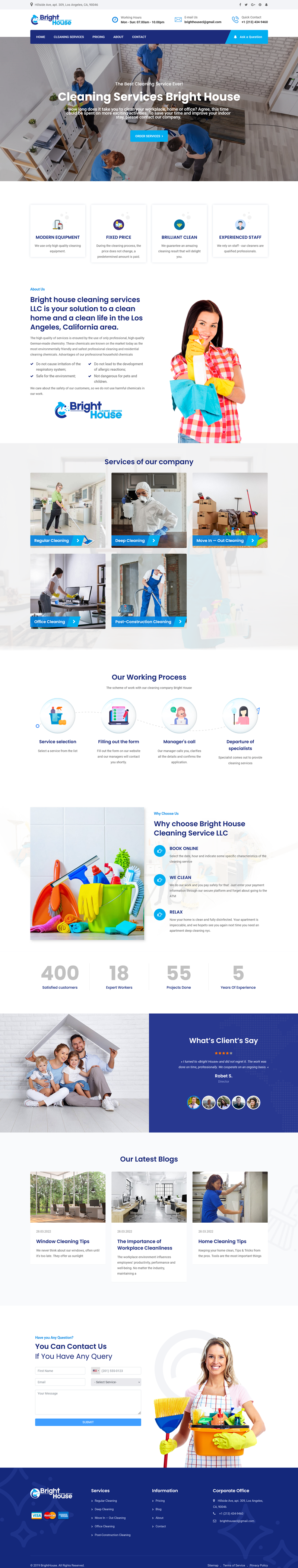 Клиент обратился с задачей полностью создать сайт с нуля под услуги клининговой компании. Мы нарисовали дизайн, после чего был куплен VPS сервер и установлен движок WordPress с последующей его настройкой и подключением нужных плагинов